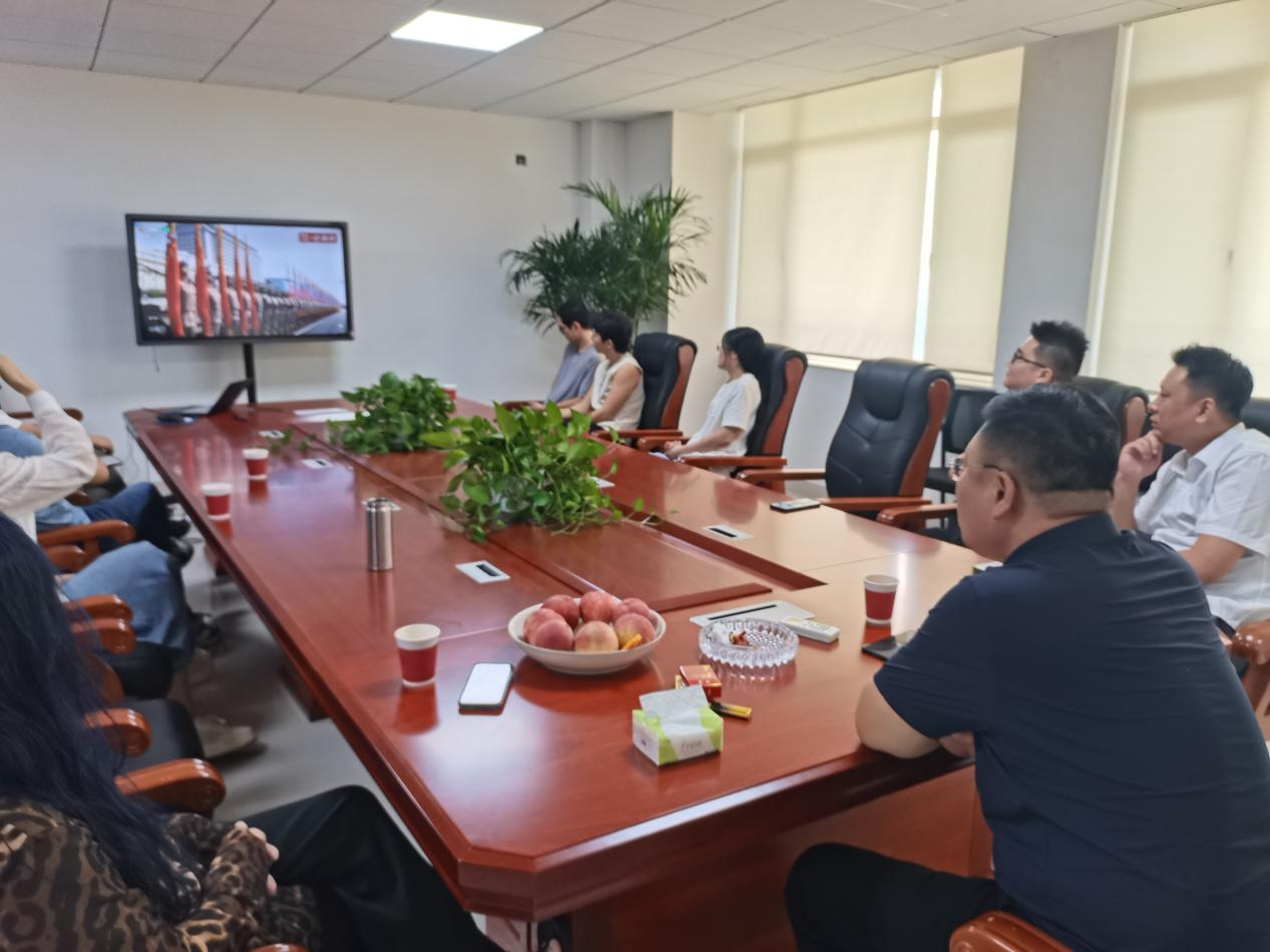 当阅兵仪式开始,整齐划一的徒步方队、威武霸气的装备方队、翱翔天际的空中梯队依次通过天安门广场,展示了我国强大的国防力量和军队现代化建设的卓越成就。全体员工聚精会神地观看,被一幕幕壮观的场景所震撼,不时爆发出热烈的掌声和欢呼声。